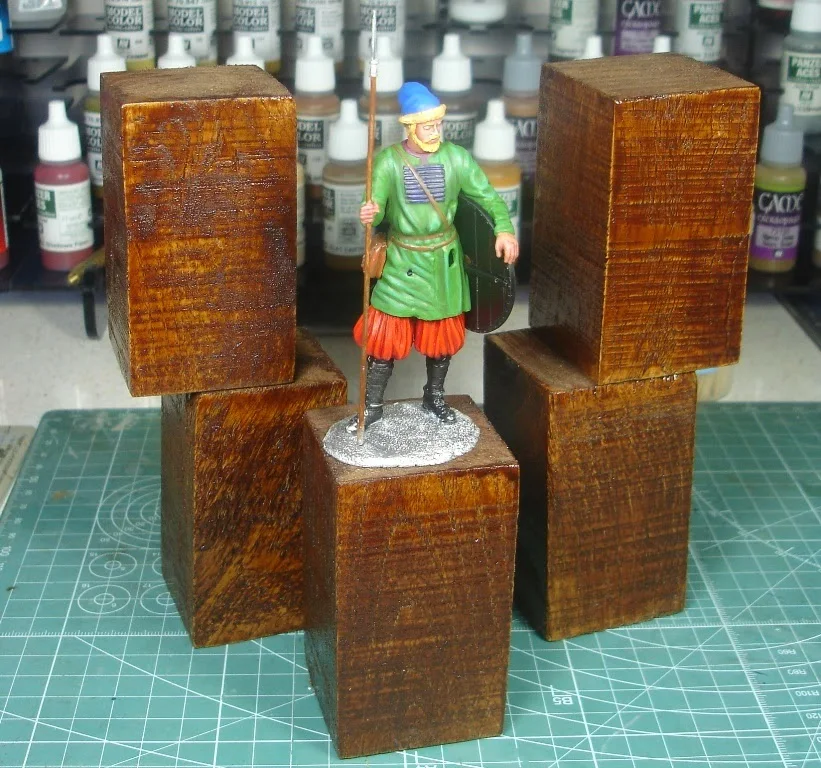 Kaideleri 8 cm. yükseklikte seçmenin 75 mm. modeli daha heybetli ve doygun gösterdiği, figürün ele alınmak istendiğinde tabanlığın çok rahat kavrandığı gibi avantajlar sağladığını müşahade ettim. 54mm den 90 mm. figürlere kadar olan skalada aynı ebat kaidelerin kullanımlarının avantajlı olacağını da tesbit ettik.